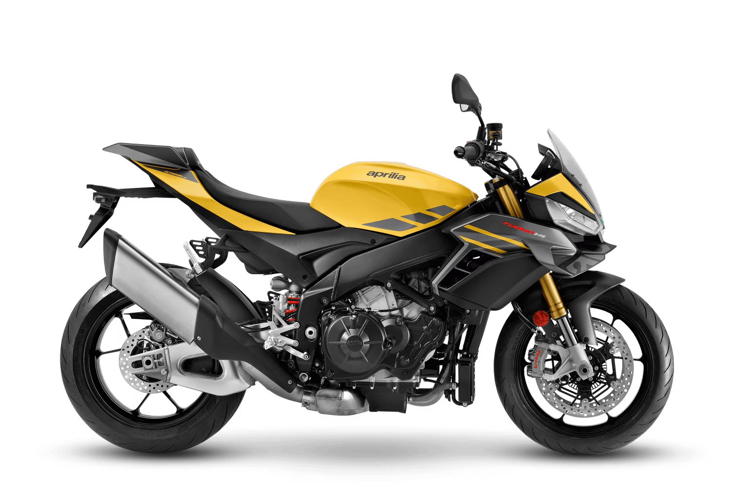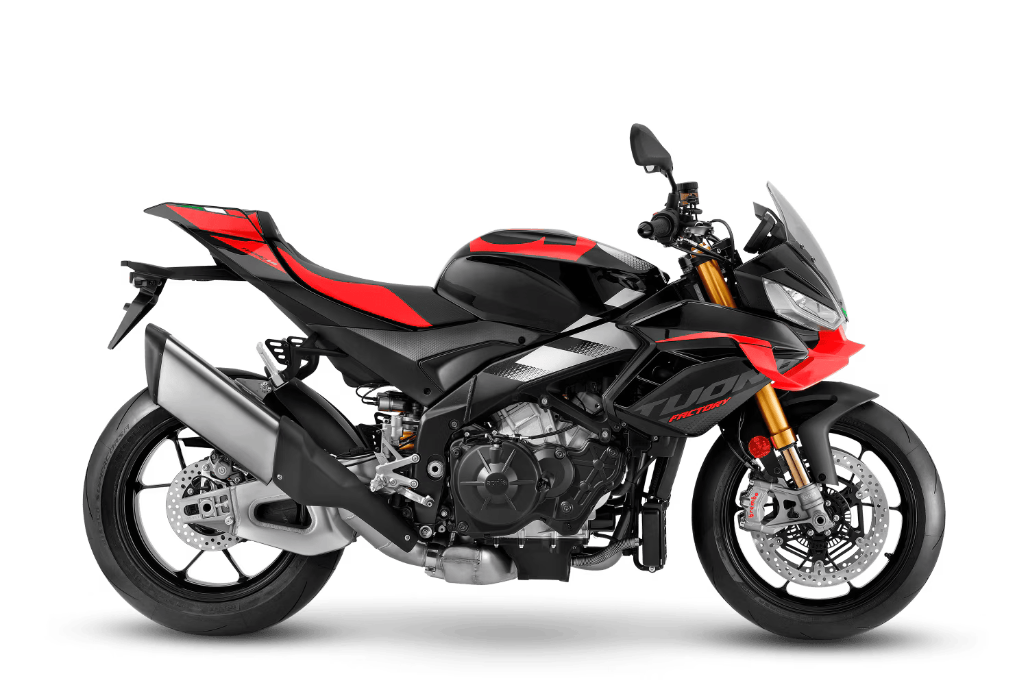 Aprilia Tuono V4 accorda performance da sportiva ad eccezionale guidabilità su strada. Risoluta e versatile come non mai, grazie al motore V4 E5+ da 180 CV, all'ergonomia che da subito confidenza, al design con winglets integrate che aumentano la stabilità e al pacchetto elettronico a-PRC personalizzabile.