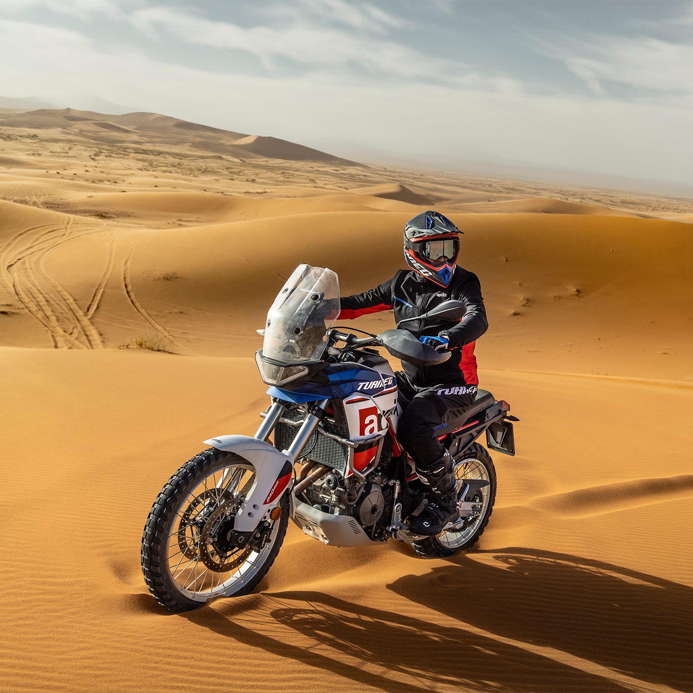 Il concetto di avventura va riscoperto e reinventato per riaccendere quella magica sensazione. Che il tuo terreno di gioco siano le dune nel deserto, i sentieri tra le Alpi o gli ostacoli della guida cittadina, tutto ciò che ti serve è un casco e la chiave della Tuareg 660 per unirti al movimento e partire alla scoperta.