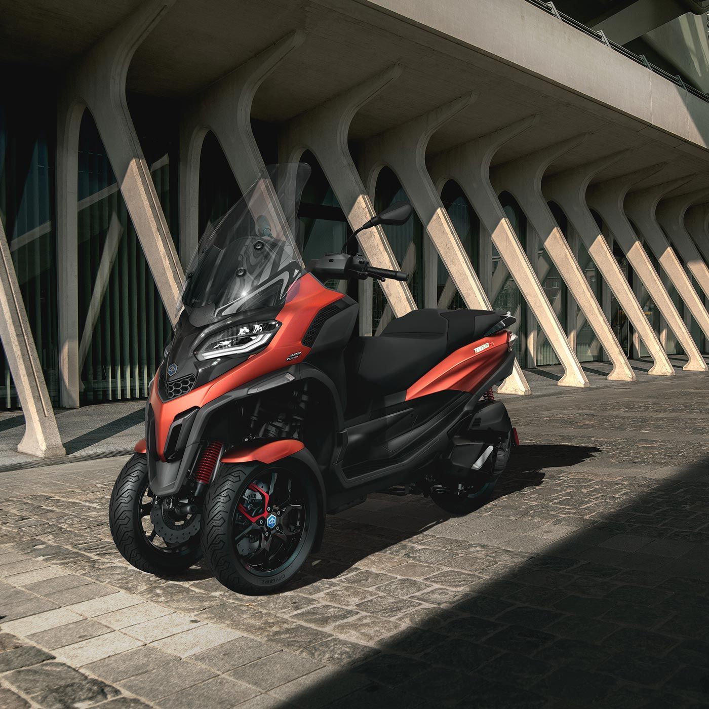 Il design dell’MP3 400 hpe Sport si rivela più aggressivo e audace, esaltato da cromie esclusive studiate ad hoc. Anche l’esperienza di guida compie un ulteriore passo avanti, grazie alla dotazione di serie della piattaforma multimediale Piaggio MIA, che connette il veicolo allo smartphone per gestire al meglio chiamate, messaggi e musica.