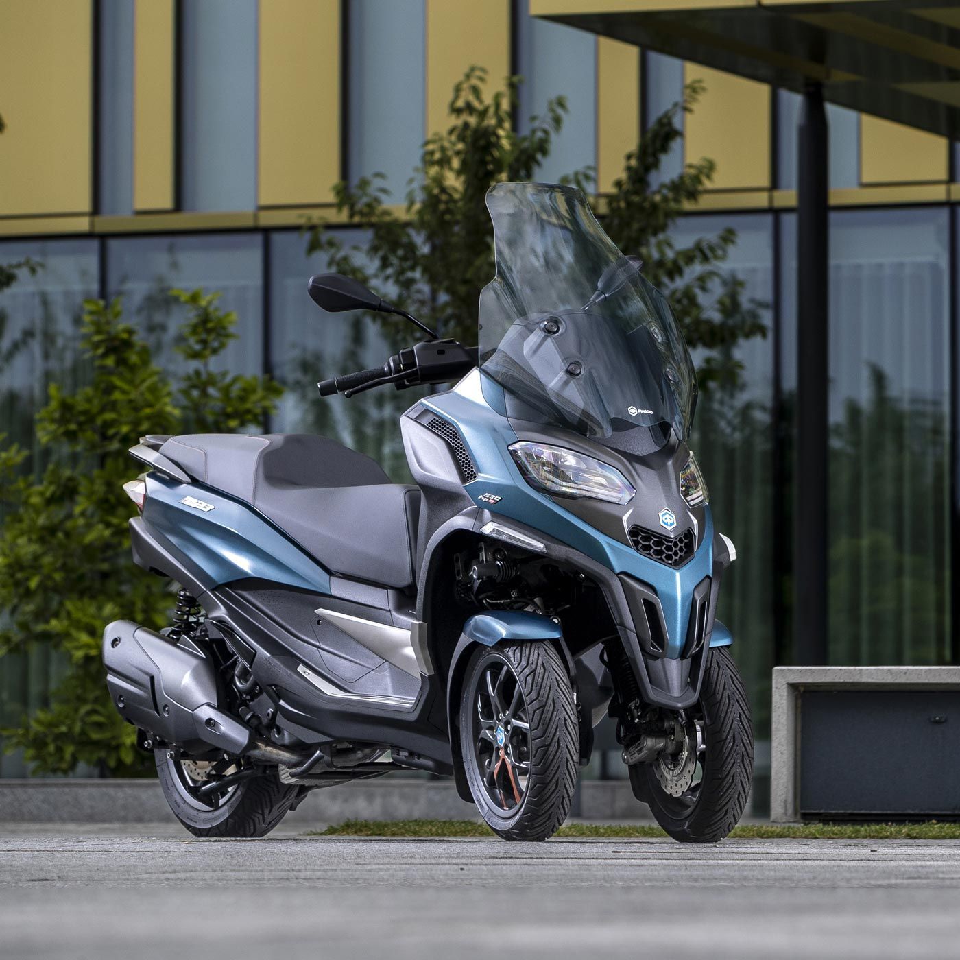 Piaggio ha integrato le più avanzate innovazioni per offrire un’esperienza di guida unica. Il sistema keyless permette di avviare il veicolo in modo rapido e semplice, mentre il cruscotto include un vano porta oggetti con porta USB. Il sottosella, spazioso e illuminato, garantisce praticità, e il display TFT a colori da 7”, il più grande nel segmento dei tre ruote, consente di visualizzare chiamate, musica e navigazione GPS. La versione 530cc si distingue ulteriormente con cruise control, retromarcia dotata di telecamera posteriore, sistema BLIS per individuare veicoli negli angoli ciechi e LCDAS, che segnala auto in rapido avvicinamento potenzialmente rischiose.