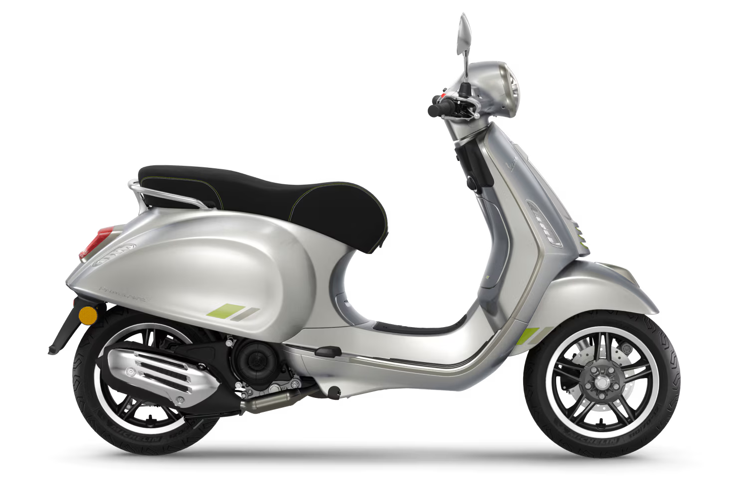 Vespa Primavera Tech aggiunge innovazione tecnologica all’anima autentica di Vespa Primavera, proponendo uno stile esclusivo e moderno. Le finiture cromate e i colori iridescenti che si accostano armoniosamente creano un intenso gioco di luci, mentre i dettagli in verde fluorescente contrastano donando un tono dinamico e tecnologico.